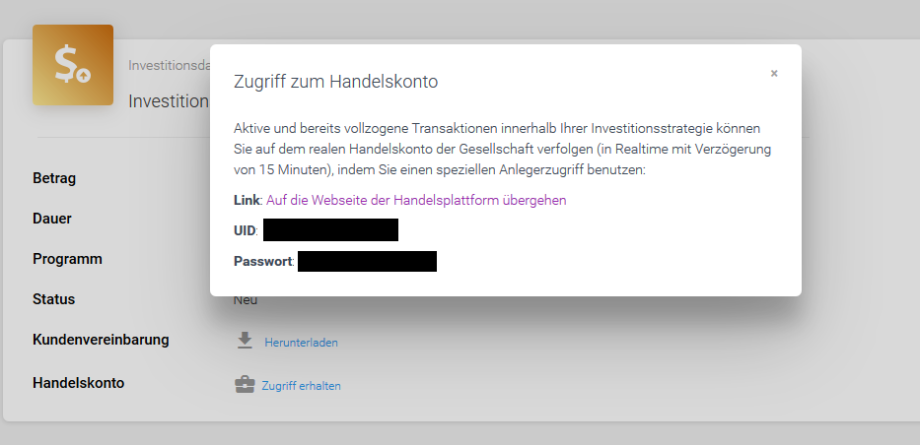 Als erstes können wir zwischen konservativ, mässig und einer aggressiven Strategie wählen. Danach können wir die Laufzeit von 2, 4, 6, 8, 10 und 12 Monaten wählen. Natürlich gilt hier, je länger die Laufzeit und je aggressiver, desto mehr Rendite. Bei allen Plänen erhalten wir am Ende der Laufzeit 100% unseres Investments zurück erstattet!